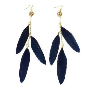 S_600746D - EARRINGS 3 FEATHERS WITH DARK BLUE RHINESTONE BOLLETJE (1st)