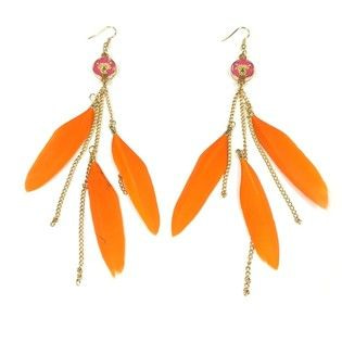 S_600753E - EARRINGS 3 FEATHERS TIGER ORANGE (1st)