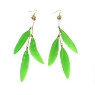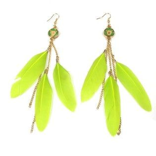 S_600746E - EARRINGS 3 FEATHERS WITH RHINESTONE BOLLETJE POISON GREEN (1st)