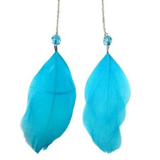 S_600787B - EARRINGS A FEATHER AND BEAD BLUE (1st)