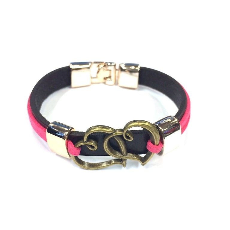 S_811349A - LEATHER BRACELET MIX COLORS HEART (3p)