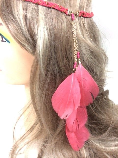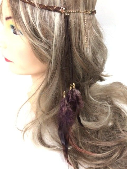 S_600023D - IBIZA LOOK BRAIDED HAIR BAND WITH FEATHERS BROWN (1st)