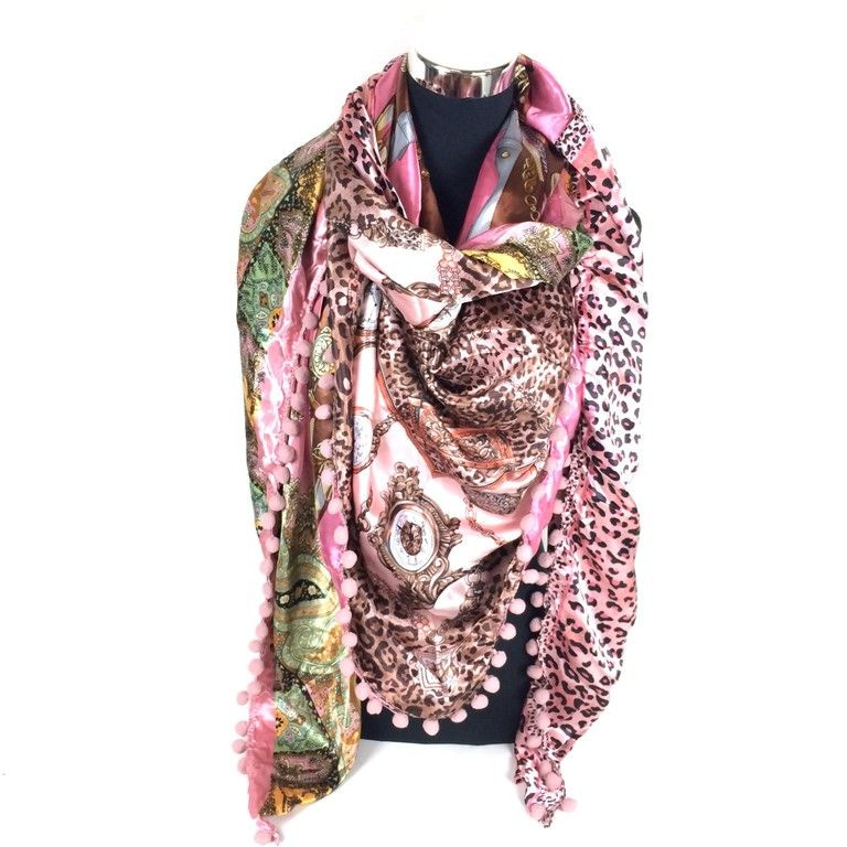 S_2149007AH - LUXURY TRIANGLE SCARF 2-SIDED PINK / PANTHER BULLETS (1st)