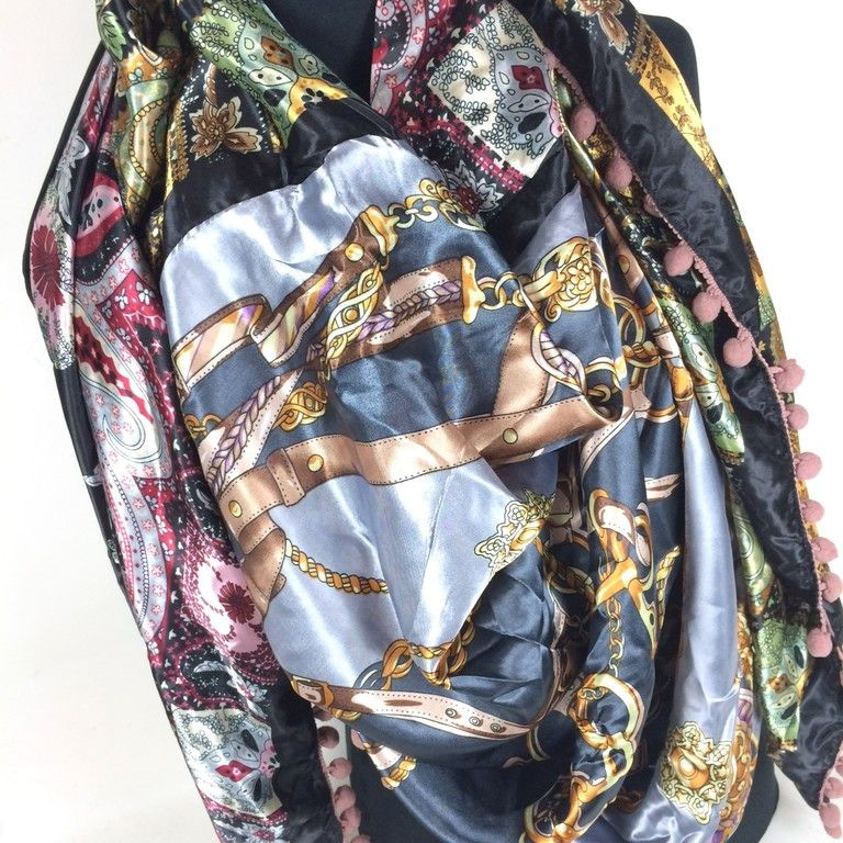 S_2149007AB - LUXURY 2-SIDED TRIANGLE SCARF GREY / PINK / GREEN (1st)
