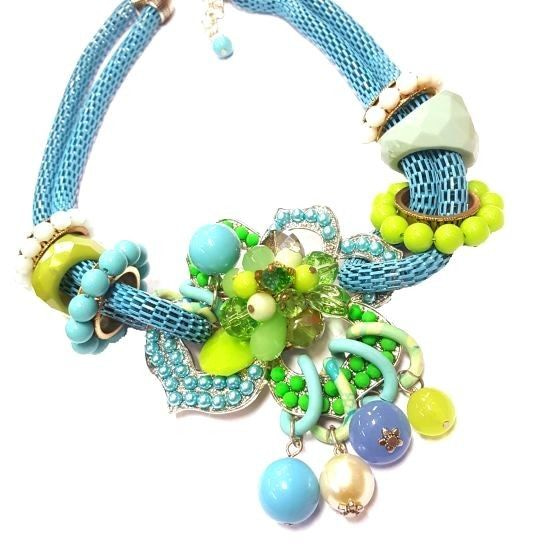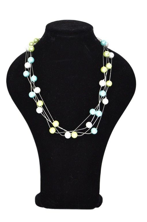 S_750704 - PEARL NECKLACE GREEN / BLUE SHORT (4pc)