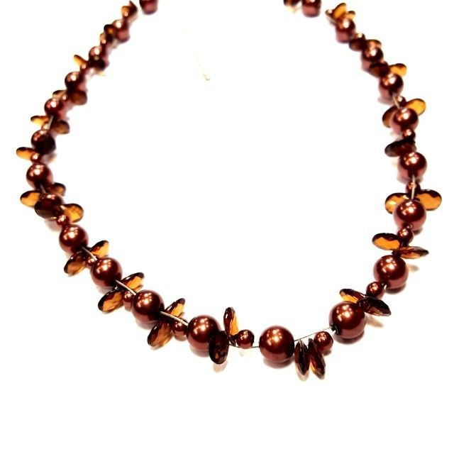 S_796189 - PEARL NECKLACE MATT BROWN / TAUPE (3p)