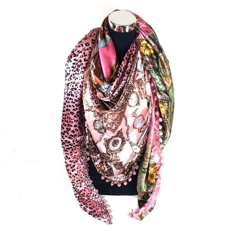 S_2149007AI - LUXURY TRIANGLE SCARF 2-SIDED PINK / PANTHER BULLETS (1st)