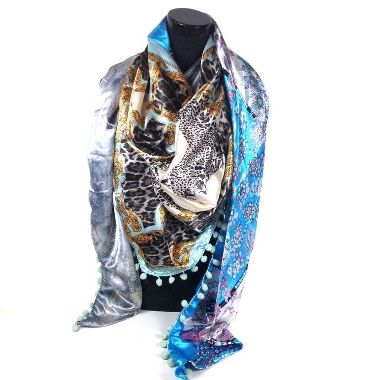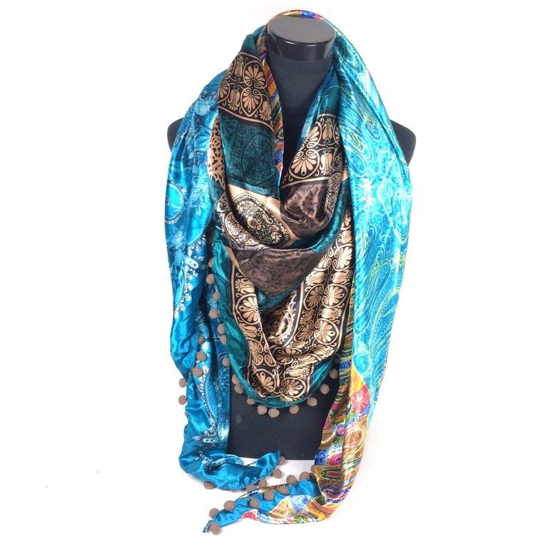 S_2149007CD - DELUXE 2-SIDED TRIANGLE SCARF AQUA TAUPE SCOOPS (1st)