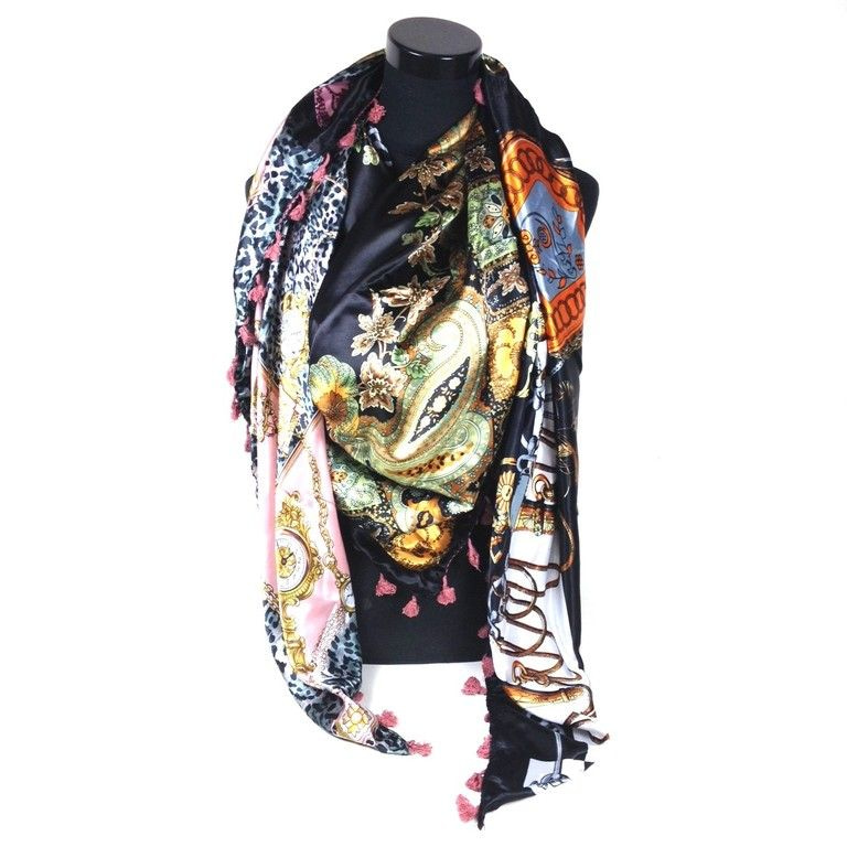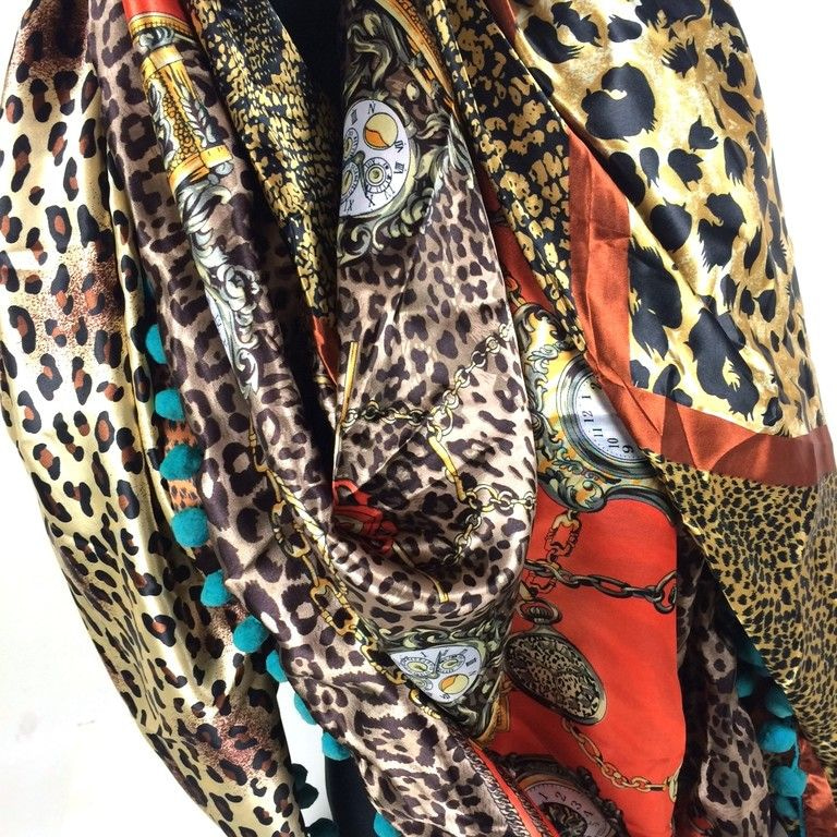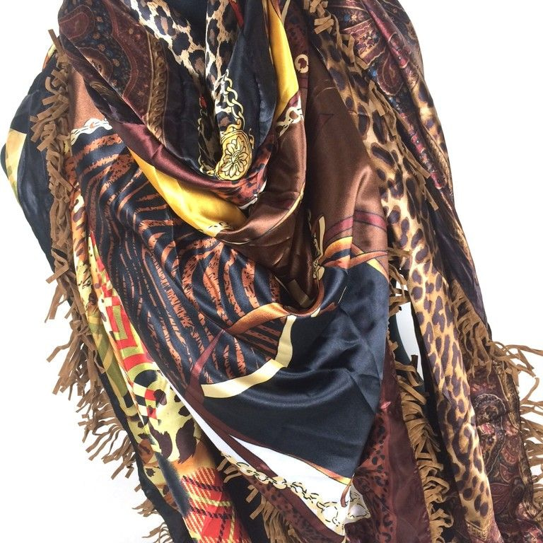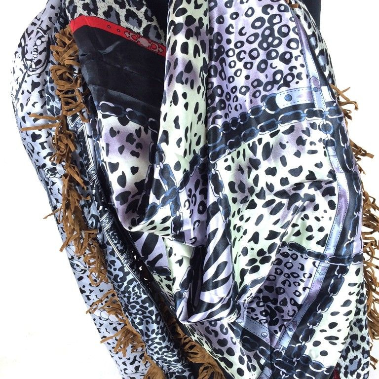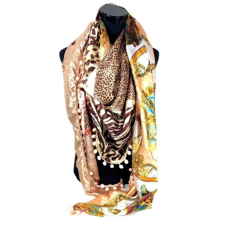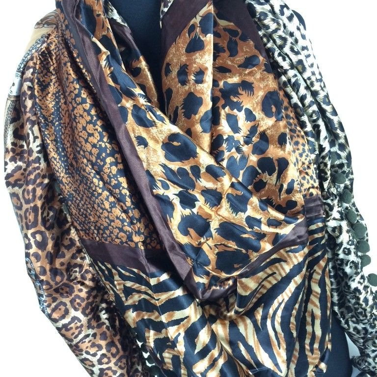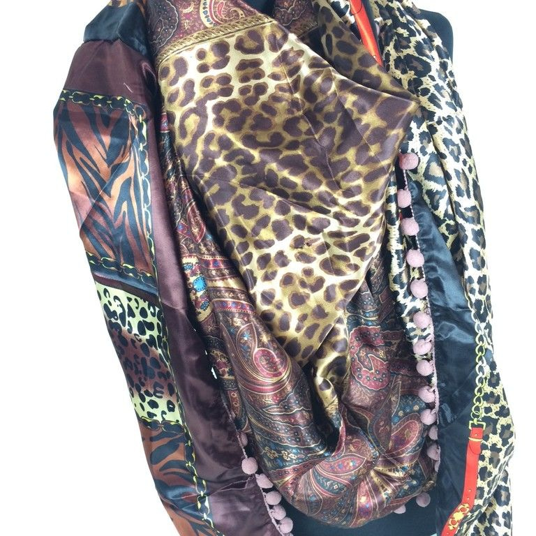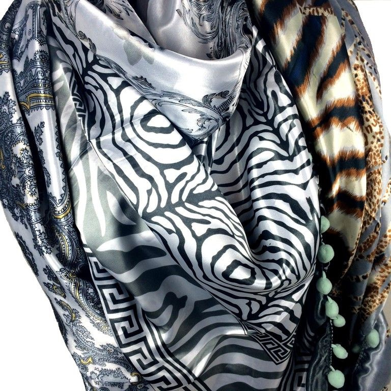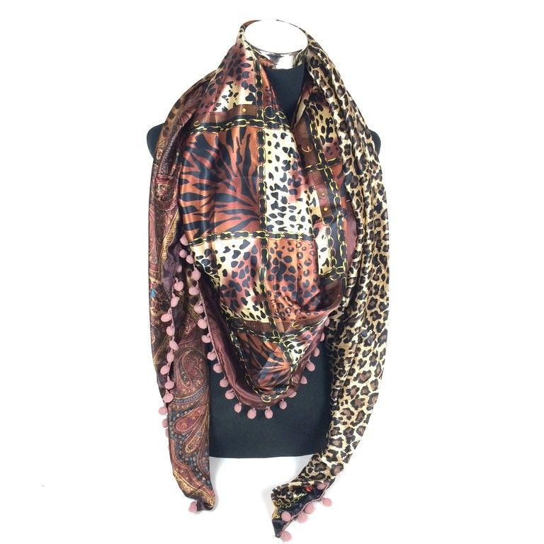S_2149007FD - DELUXE 2-SIDED TRIANGLE SCARF SALMON / PANTHER / ZEBRA (1st)