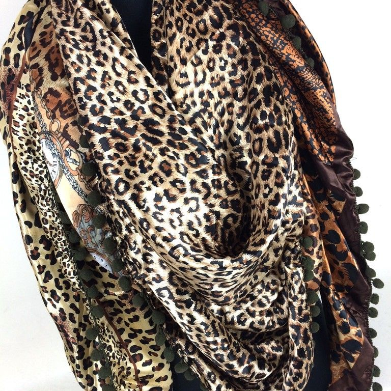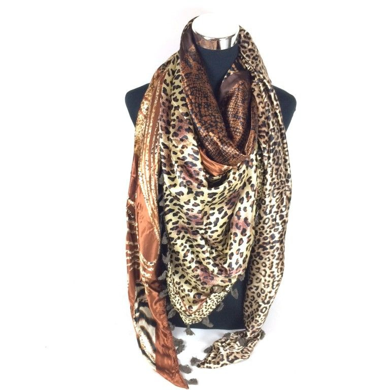 S_2149007AL - LUXURY 2-SIDED TRIANGLE SCARF BROWN / PANTHER (1st)