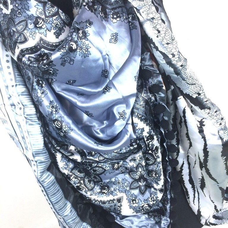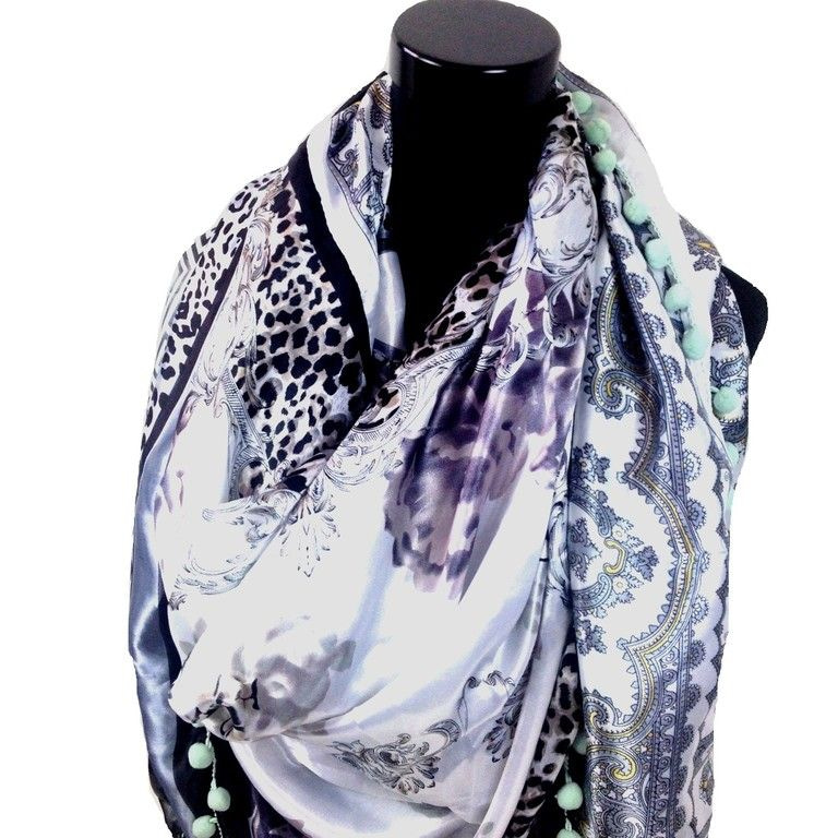 S_2149007GP - DELUXE 2-SIDED TRIANGLE SCARF GREY FLOWER / PANTHER (1st)