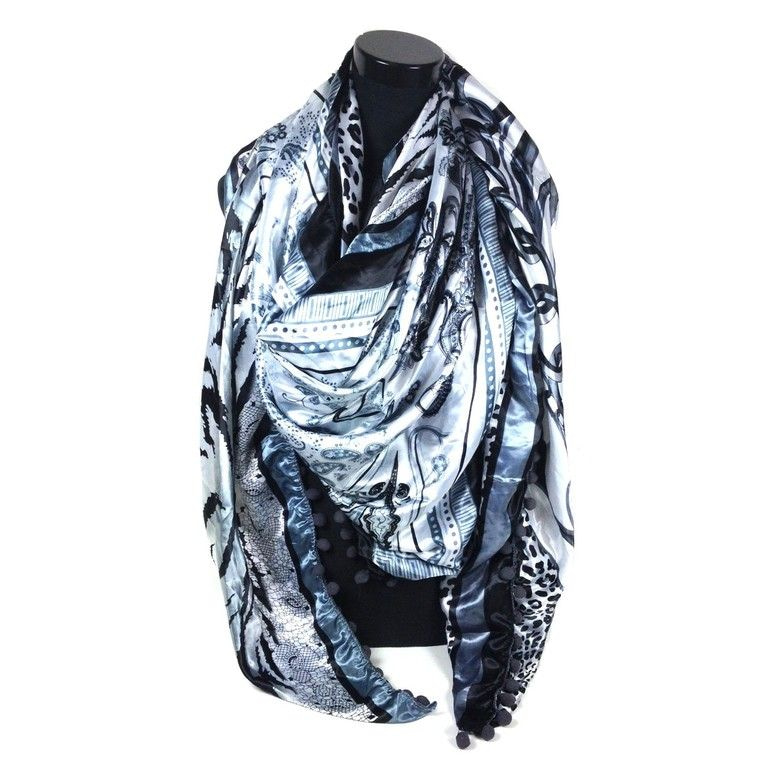 S_2149007DL - DELUXE 2-SIDED TRIANGLE SCARF BLACK / WHITE - GREY SCOOPS (1st)