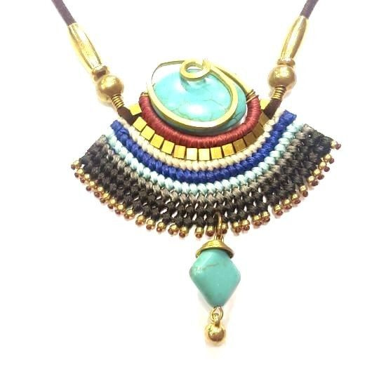 S_600207D - HANDMADE NECKLACE BLUE STONE IBIZA ORIGINALS COGNAC / ROOZE (1st)