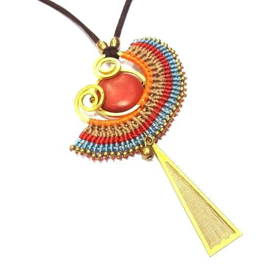 S_600206A - HANDMADE NECKLACE WITH IBIZA ORIGINALS REDSTONE ORANGE / BLUE (1st)