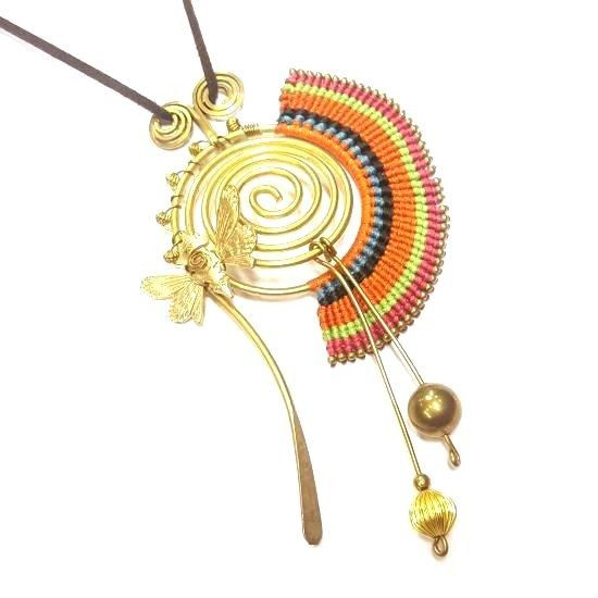S_600225E - HANDMADE NECKLACE WITH BLUE STONE IBIZA ORIGINALS PURPLE / ORANGE (1st)