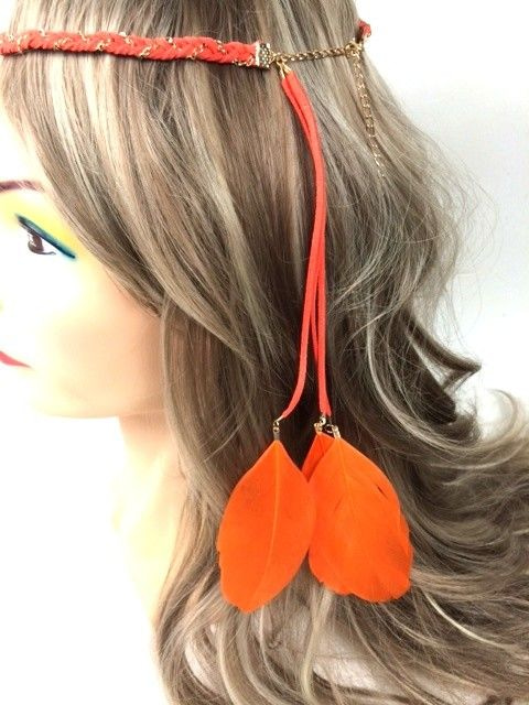 S_600028A - IBIZA LOOK BRAIDED HAIR BAND WITH ORANGE FEATHERS (1st)