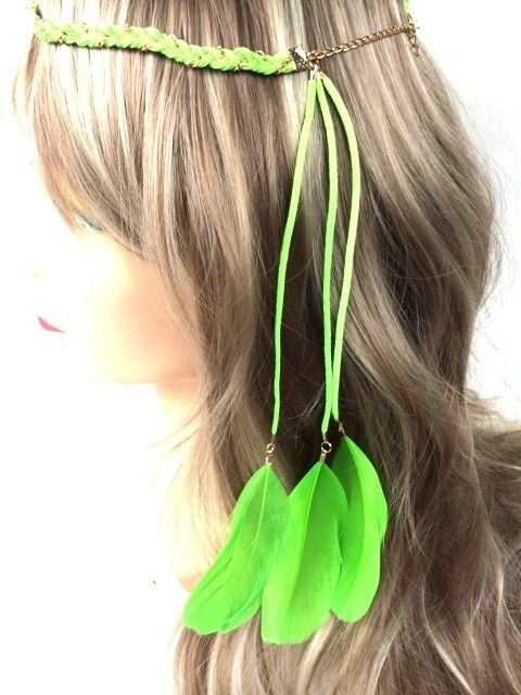 S_600028I - IBIZA LOOK BRAIDED HAIR BAND WITH FEATHERS GREEN (1st)