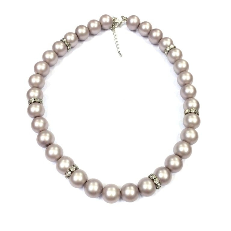 S_796117 - PEARL NECKLACE PURPLE MAT / TAUPE WITH STRASS (1st)