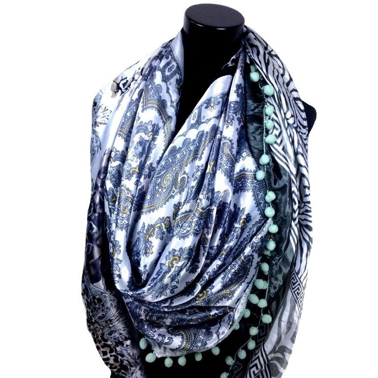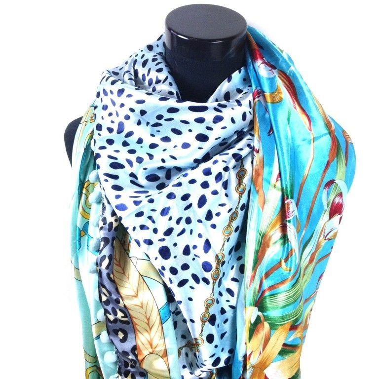 S_2149007CH - DELUXE 2-SIDED TRIANGLE SCARF BLUE PANTHER MINT SCOOPS (1st)