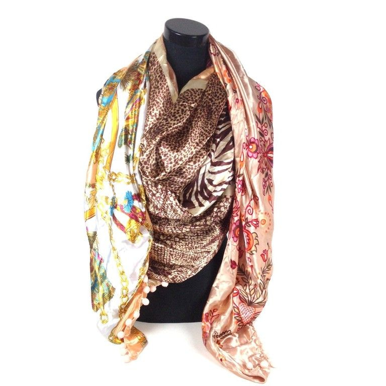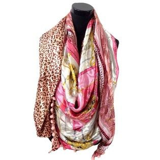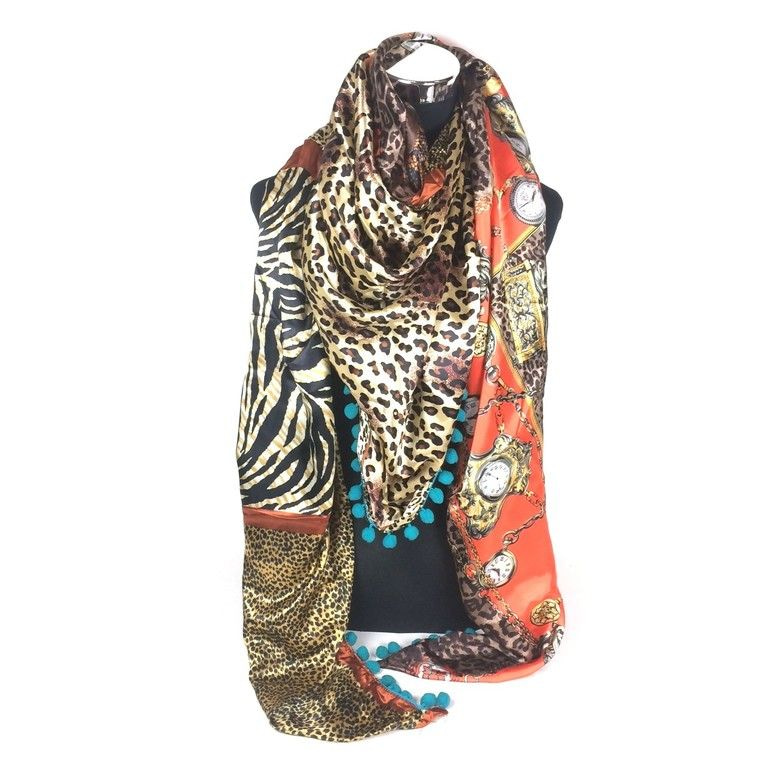 S_ 2149007W - LUXE TRIANGLE SCARF 2-SIDED PINK / PANTHER / CLOCK / MULTI (1st)