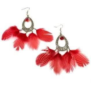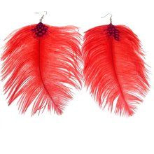 S_600754A - EARRINGS CHIC WITH FEATHERS RED BEAD (1st)