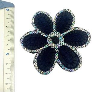 S_812222 - APPLICATION EMBROIDERED and sequins FLOWER BLACK (3p)