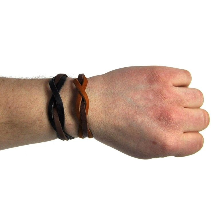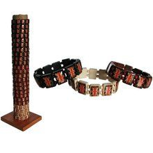 5750078 - LEATHER BRAIDED BRACELETS ON WOODEN DISPLAY (93ST).