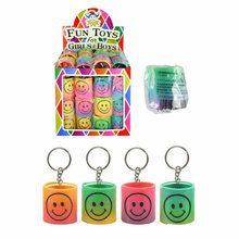 K65012 - SMILEY REGENBOOG SPIRAAL Ø 3.5 CM VOORZIEN VAN SLEUTELHANGER IN DISPLAY (60st.)