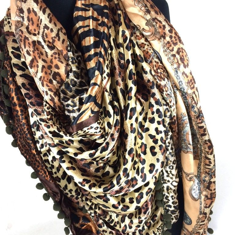 S_ 2149007W - LUXE TRIANGLE SCARF 2-SIDED PINK / PANTHER / CLOCK / MULTI (1st)