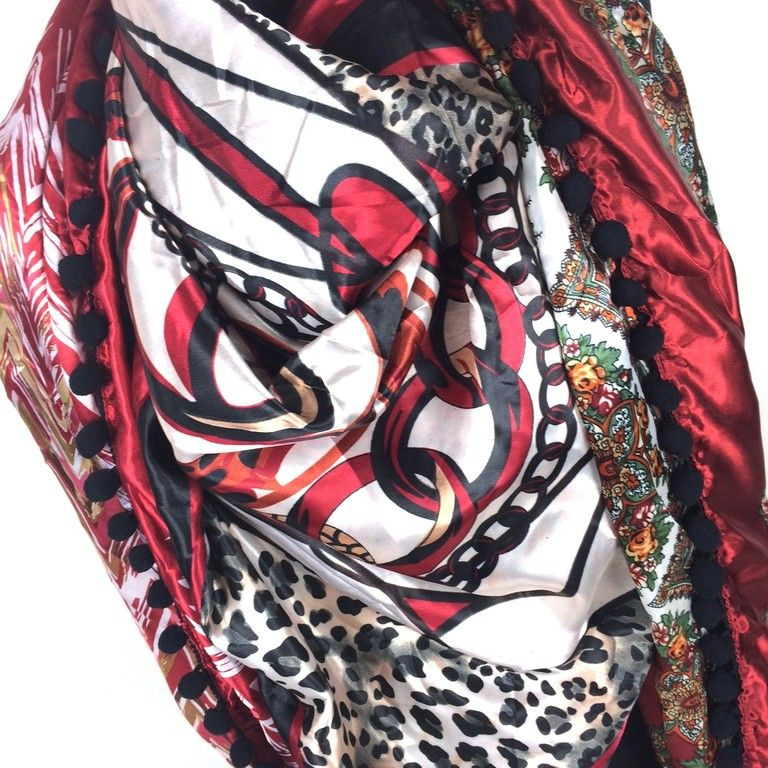 S_2149007BO - LUXURY TRIANGLE SCARF 2-SIDED SCOOPS RED / TIGER CHAIN (1st)