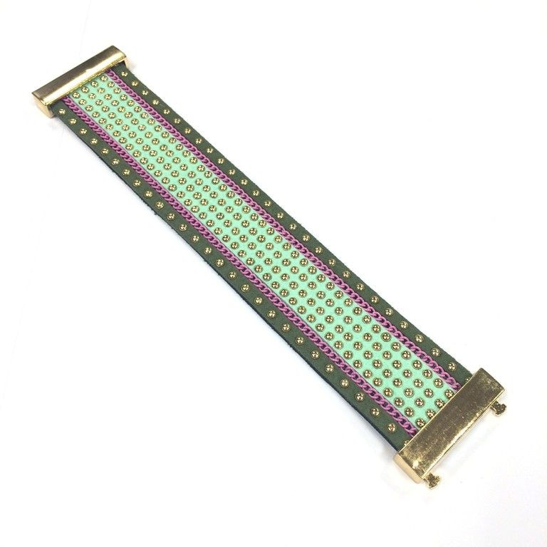 S_600800O - GOLD BRACELET MAGNETIC CLOSURE - MINT / GREEN STUDS (1st)