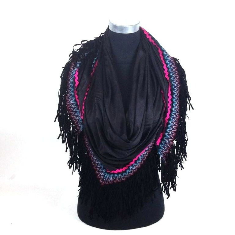 S_2308001 - LUXURY BLACK suede TRIANGLE SCARF WITH PINK TRIM AND FRILLS BAND (1st)