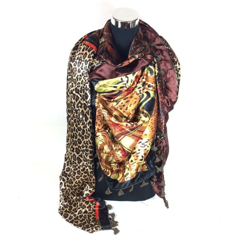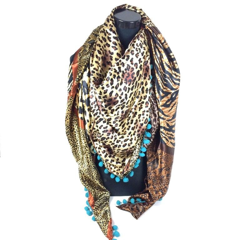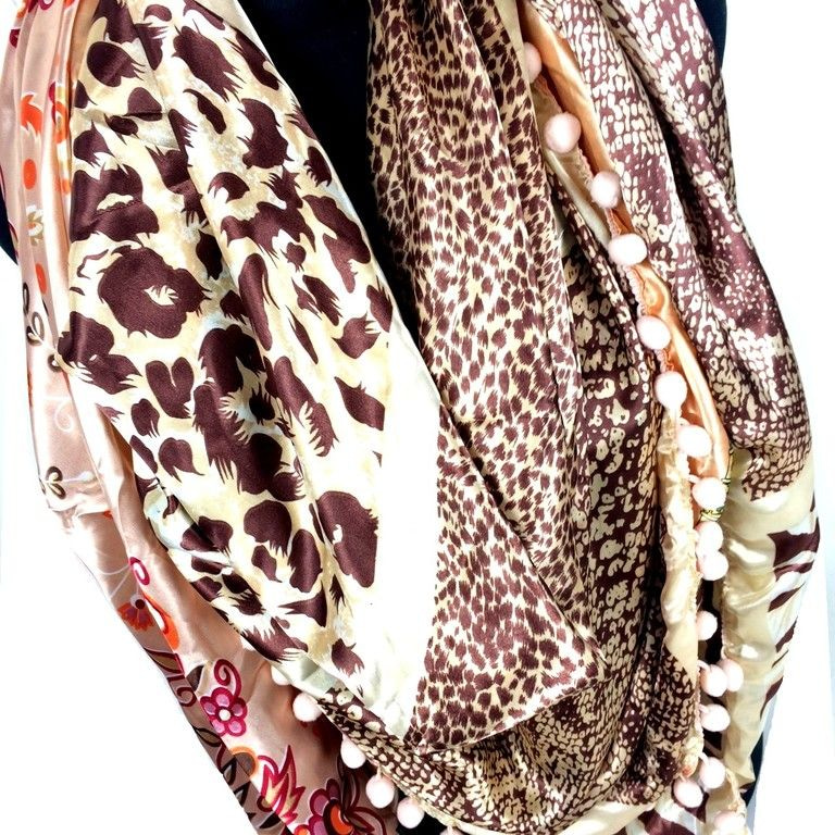 S_2149007AO - LUXURY 2-SIDED TRIANGLE SCARF BROWN / TIGER (1st)