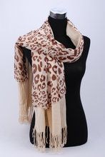 S_2602503 - SCARF LEOPARD PRINT WITH SAND TAUPE COLOURFUL FRINGE & FRILLS (1st)
