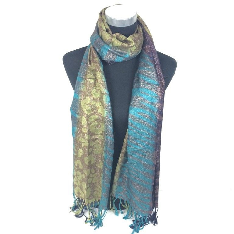 S_709841 - TIGER PRINT SCARF BLUE (2pc)