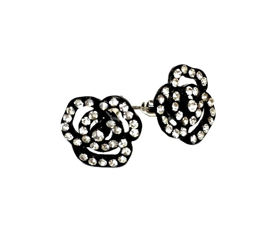 S_795305 - EARRINGS STRASS FLOWER BLACK (4st)