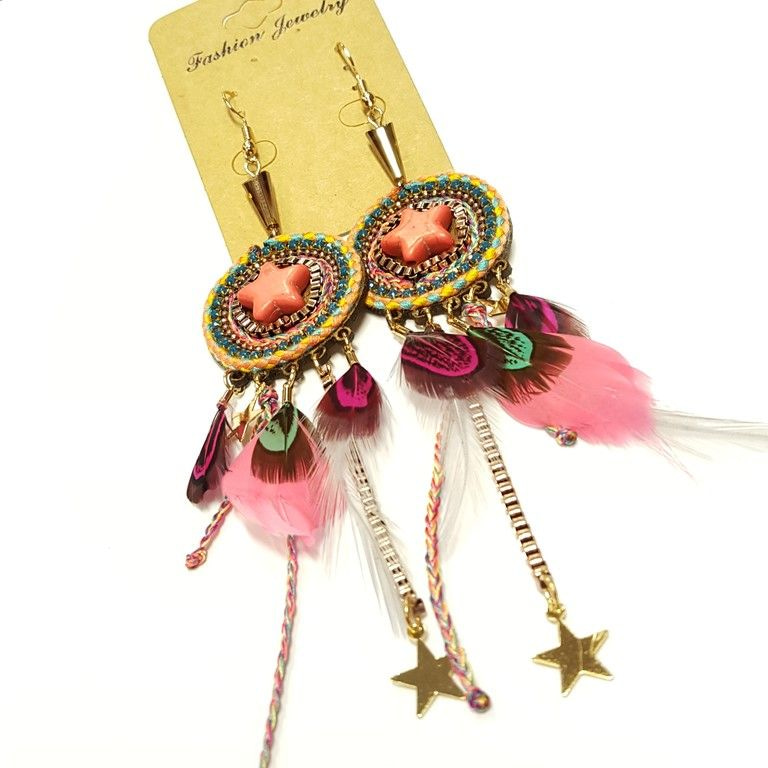 S_6450304 - EARRINGS COLORFUL FEATHERS & BRAIDS - MODEL STAR (1st)