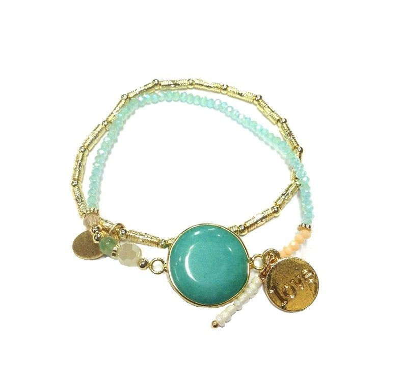 S_8643407 - IBIZA LOOK MINT GREEN BRACELET WITH TURQUOISE STONE (1st)