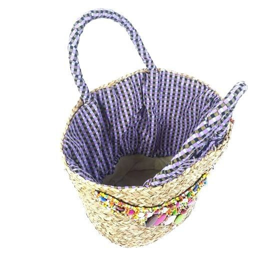 S_811443B - AB COLLEZIONI - BRAIDED seagrass BAG WITH BEAUTIFUL APPLICATION - PURPLE (1st)