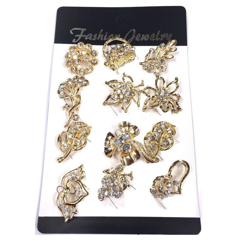 S_75331 - RHINESTONE BROOCH GOLD WITH TRANSPARENT RANGE (12st)