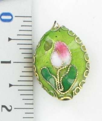 S_31403b - Art.nr: 31403b - CLOISONNE BEADS GREEN TULIP (16 pcs.)