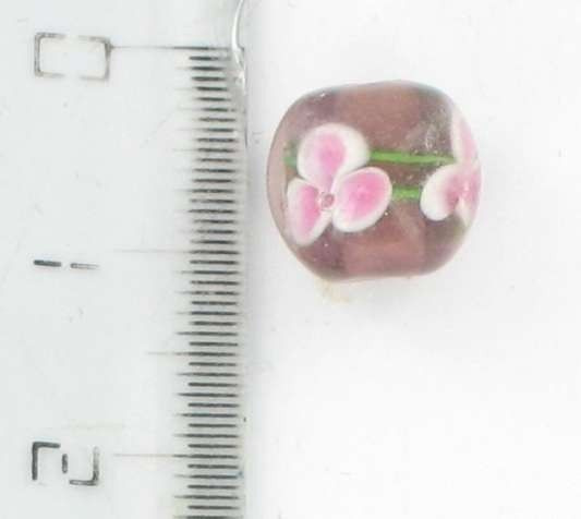 S_31805 - Art.nr: 31805 - CLOISONNE BEADS WHITE / PINK FLOWER (4 pcs.)