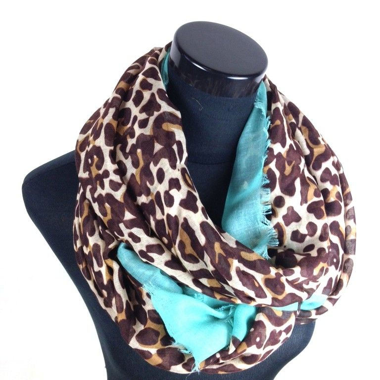 S_2321202 - LEOPARD PRINT SCARF BROWN WITH MINT (1st)