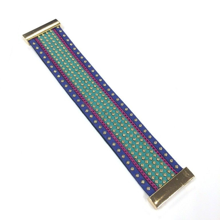 S_600800P - GOLD BRACELET MAGNETIC CLOSURE - PURPLE / MINT STUDS (1st)