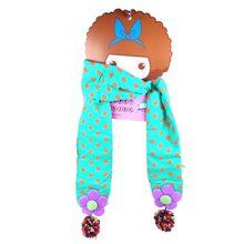 S_812243BD - CHILDREN'S SCARF MINT GREEN DOTS ORANGE WITH GREEN / PINK FLOWER (1st)