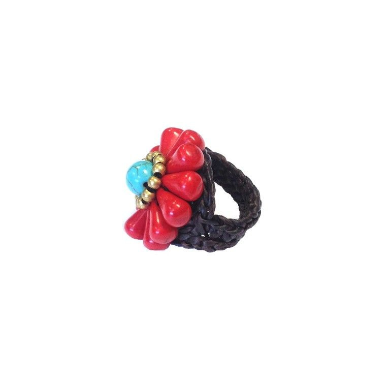 S_600168 - IBIZA LOOK RING WITH TURQUOISE / RED STONE (1st)