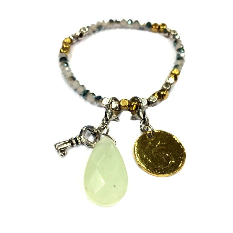 S_709003 - LUXURY BRACELET GOLD / GREEN coin - STONE (1st)