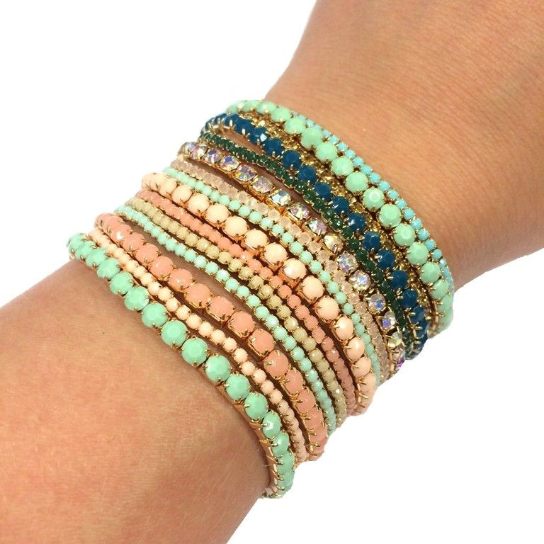 S_9494402 - BRACELET with rhinestones SALMON / MINT GREEN (1st)