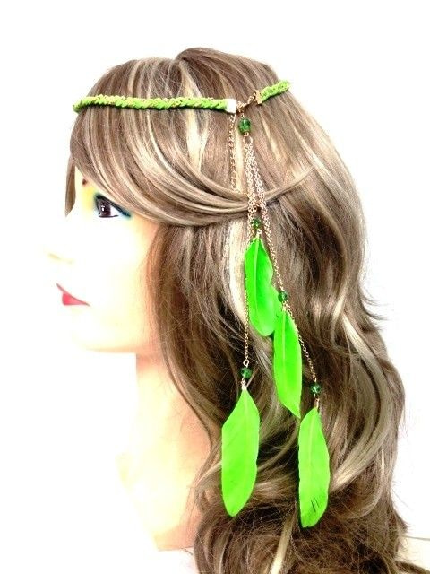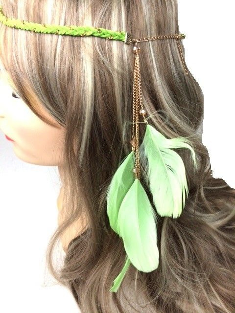 S_600024E - IBIZA LOOK BRAIDED HAIR BAND WITH FEATHERS GREEN (1st)