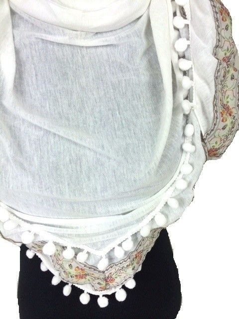 S_2078005 - IBIZA LOOK TRIANGLE SCARF WHITE WITH SCOOPS (1st)